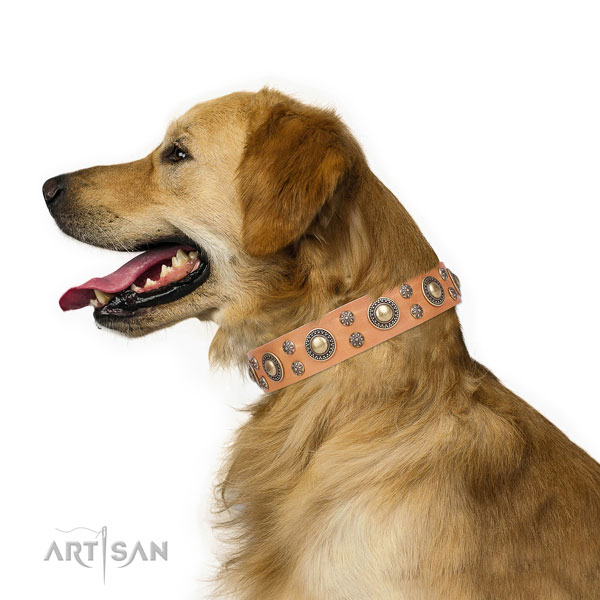 Golden Retriever impressive studded genuine leather dog collar for everyday use