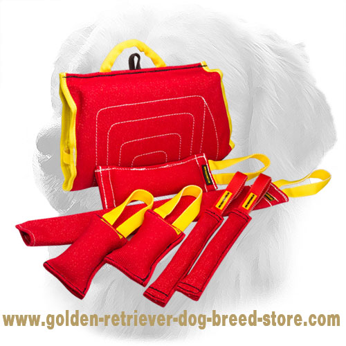 If you want to start training your active puppy... If you want to get for him only premium quality dog training equipment... Then pay attention to this Exclusive Dog Bite Training Set that includes everything that is necessary for your Golden Retriever's proper training. All the items are of high quality and absolutely safe for your pet's health. So order now this Set - you will save your money and provide your canine with the best dog equipment he deserves!